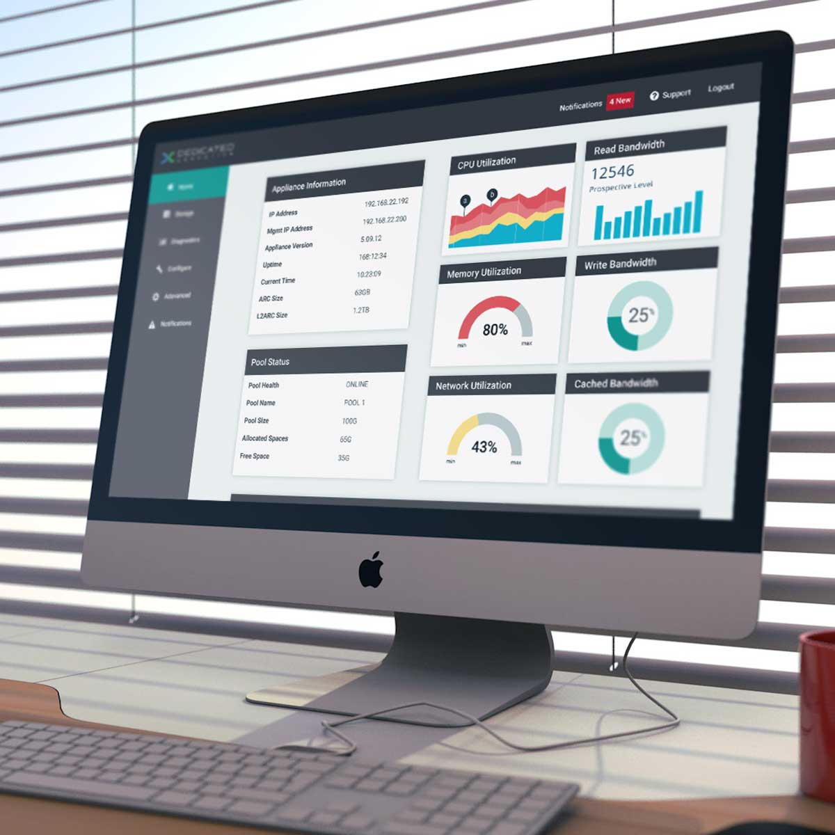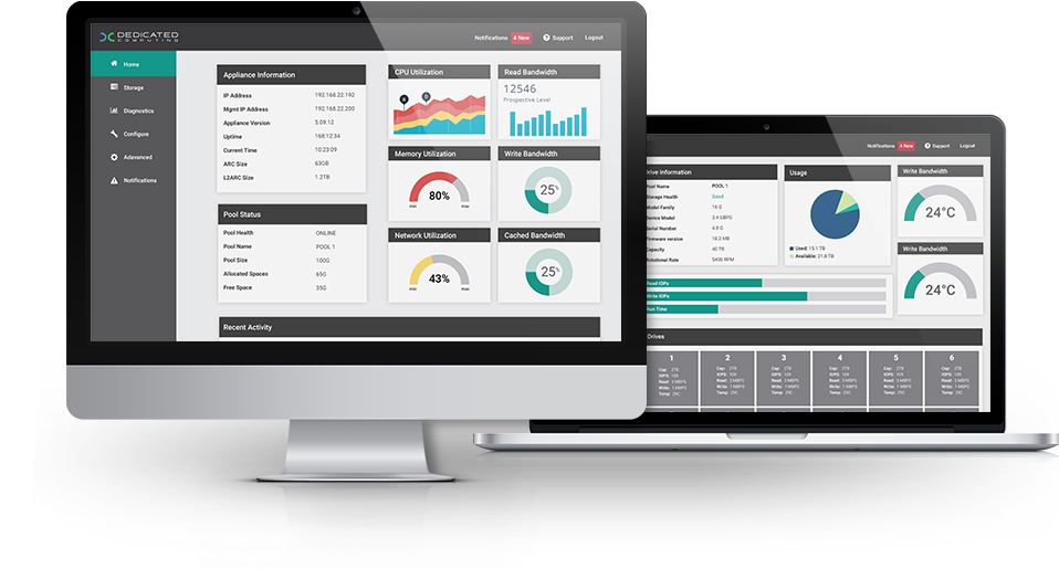 How do you design and develop a user interface for an advanced technical storage solution that is intuitive and easy to understand? Dedicated Computing’s new software defined storage appliance needed a sophisticated user interface to display complex hardware information for their end users.